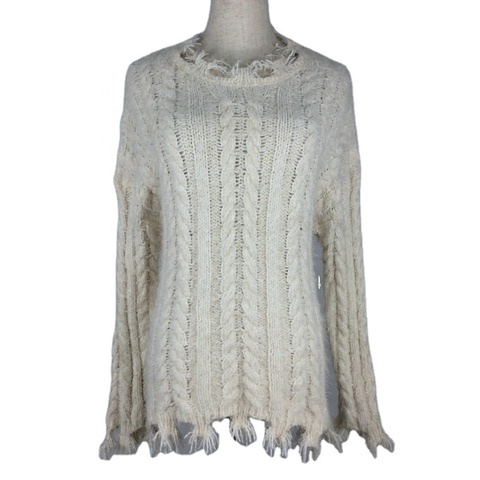 Mode Fuzzy Nylon Pullover zerstört Strick pullover Kabel flauschige Top weiße Ärmel lange haarige Garn
