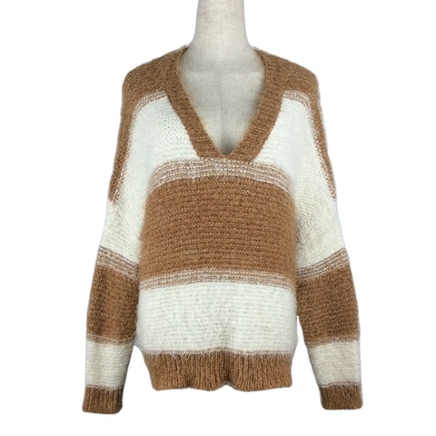 Modest reifen Chenille Pullover Pullover V-Ausschnitt Design Frauen Farb block Verkäufer Kleidung Dame