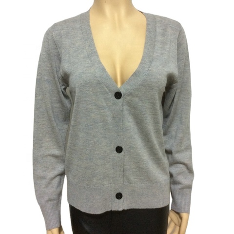 Frauen Strickjacke Pullover Mantel grau Langarm Knöpfe enge Menge benutzer definierte Druck Strickkleid ung