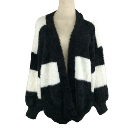 Pullover New Winter Nylon Damen Streifen Kleidung Lässige Laterne Ärmel weiche bequeme Pullover flauschige Strickjacke